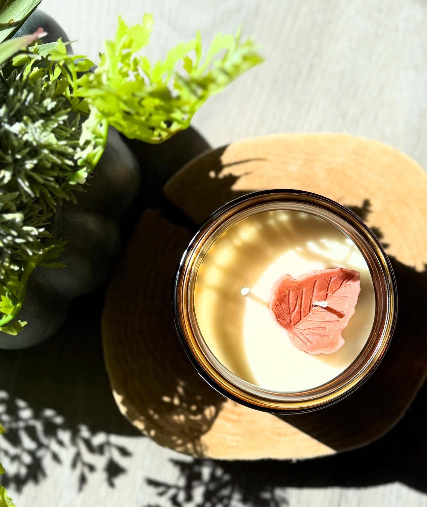 Shimmers with pearlized bronze when melted, like glowing autumn leaves.
